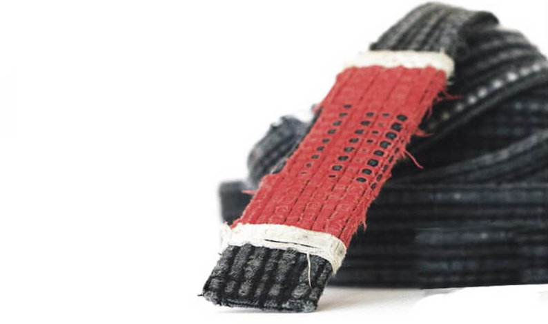 La leyenda dice que un recién llegado a las artes marciales se sentía incómodo porque su uniforme no se "quedaba quieto" en su cuerpo durante el entrenamiento, por lo que colocó una cinta de tela blanca lisa para sujetar su uniforme. y siguió entrenando con esta pieza de tela durante varios años sin cambiarla, lo que la dejó mugrienta, casi negra.